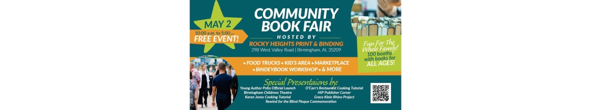 Rocky Heights Print and Binding is hosting a family-friendly community book fair. Books! Workshops! Cooking demonstrations! Stage events!